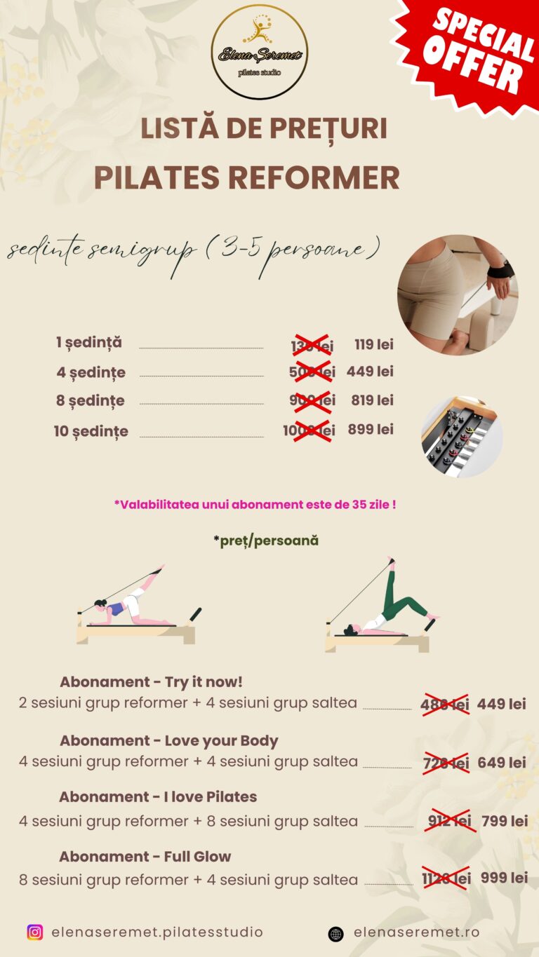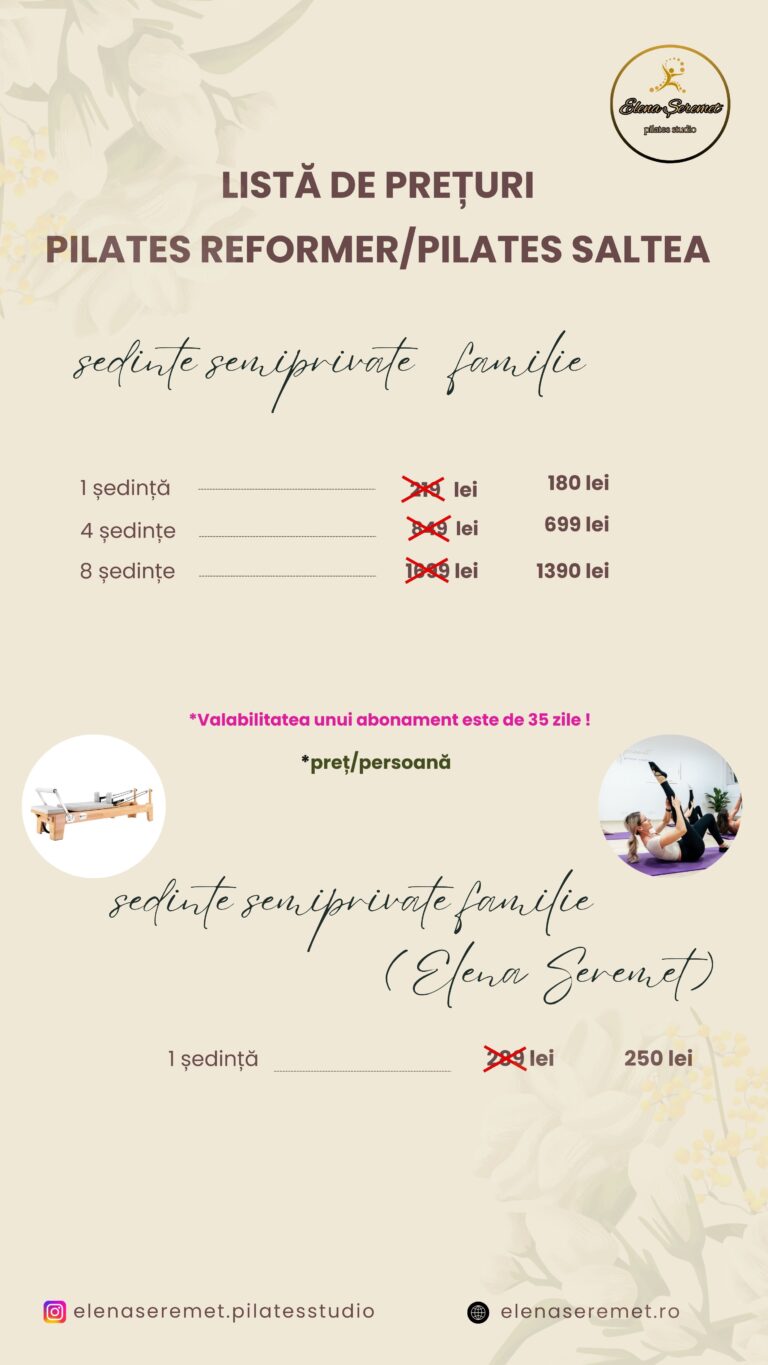Abonamentele Pilates Studio by Elena Șeremet vă ajută să vă atingeți obiectivele de fitness, sănătate și wellbeing.